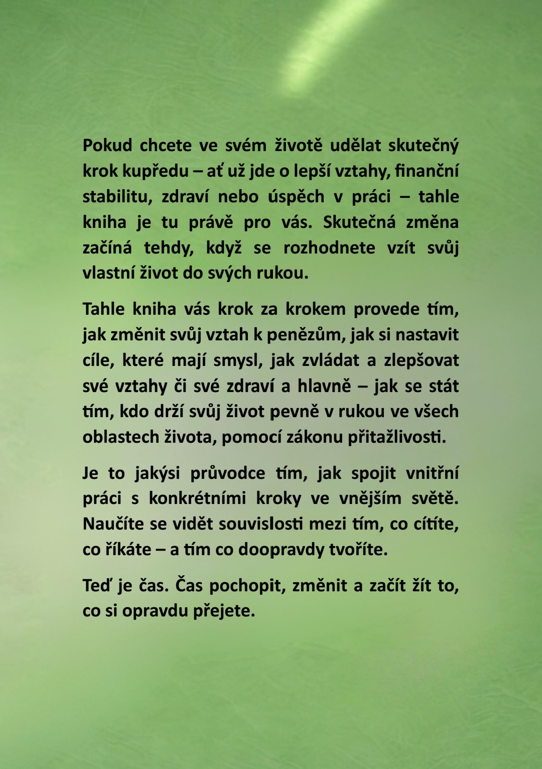 Tato kniha je určena všem, kteří chtějí pochopit, jak vědomě ovlivňovat svůj život a využívat zákon přitažlivosti v každodenní praxi. Je pro ty, kteří už vědí, že myšlení tvoří realitu – ale stále hledají způsob, jak to opravdu začít žít. Pokud toužíte po změně ve vztazích, financích, zdraví nebo práci, právě držíte v ruce návod, jak začít jinak – a lépe.